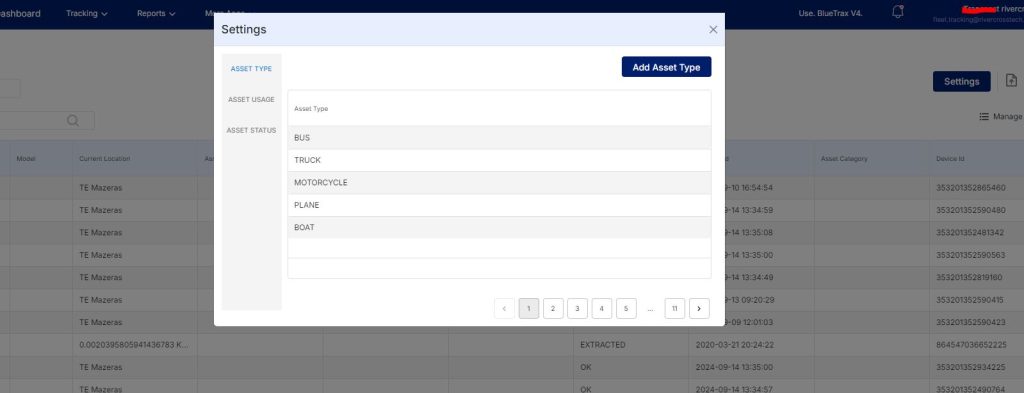 To add asset status, usage, or type, click the settings button at the top right of the assets page. A window will appear, allowing you to manage these options.